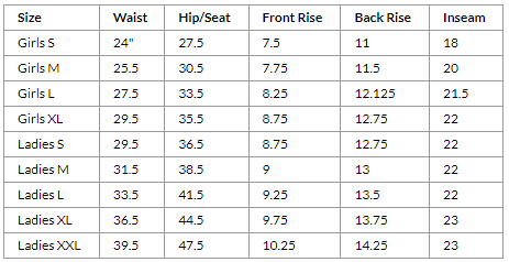 Waist | Hip/Seat | Front Rise | Back Rise | Inseam |